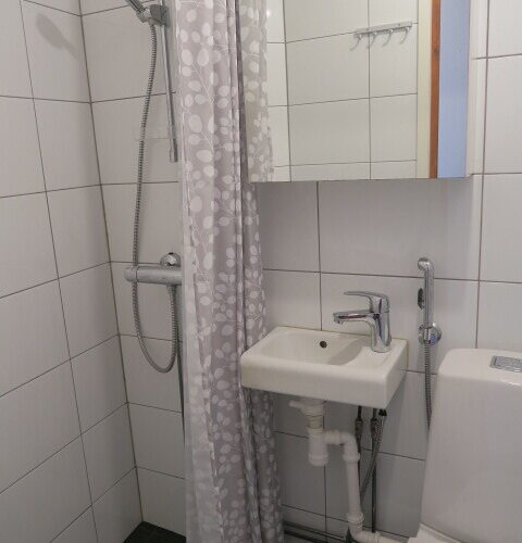 Kylpyhuone lattialämmitys, wc-istuin, suihku, peili