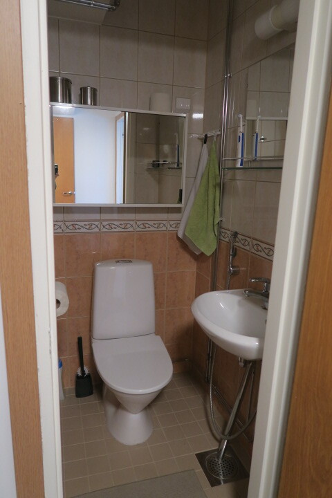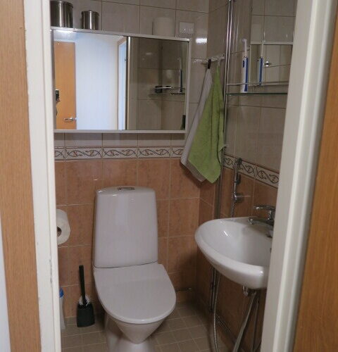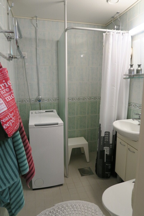 | Kylpyhuone | suihkuseinä, pesukoneliitäntä, wc-istuin, suihku, peili |