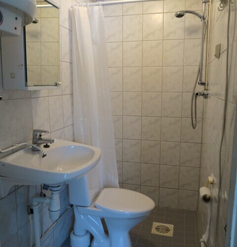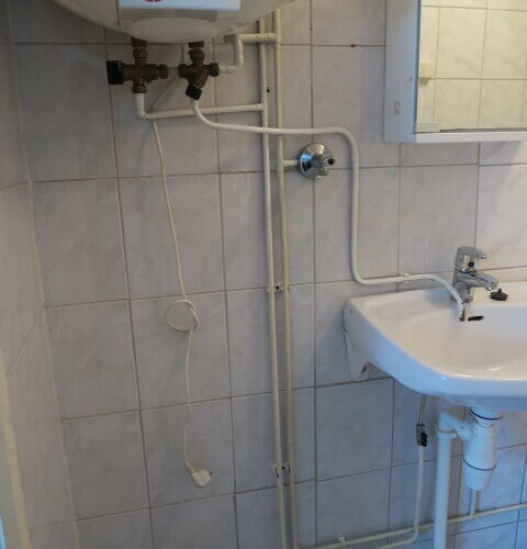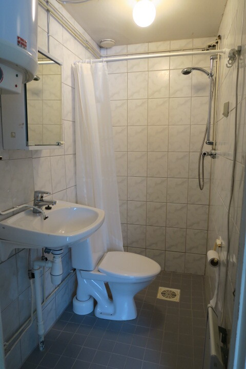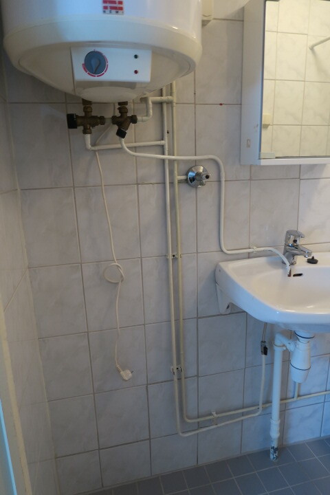 Kylpyhuone pesukoneliitäntä, wc-istuin, suihku, peilikaappi